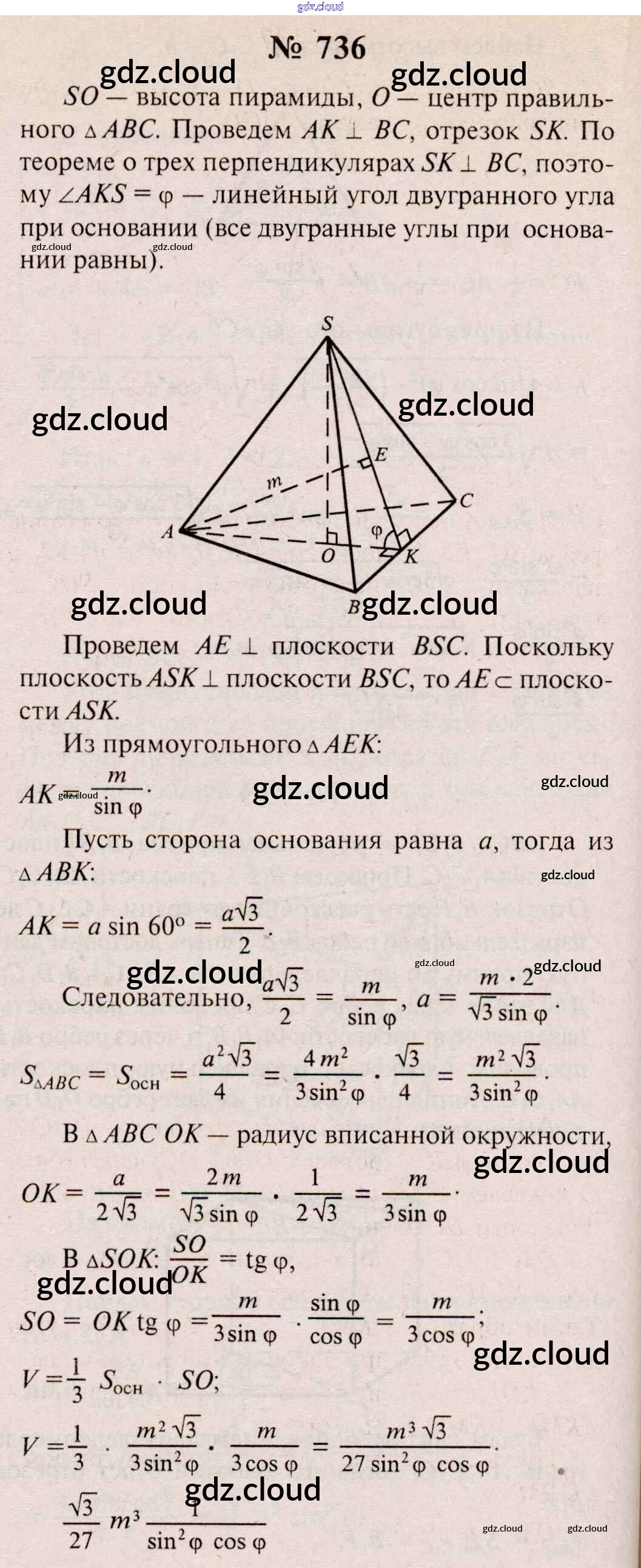 Ответ на задание 736 Учебник Геометрия  за 10, 11 (десятый, одиннадцатый) класс Атанасян, Бутузов, Кадомцев, Киселева, Позняк  Базовый и углубленный уровень 2015, 2023