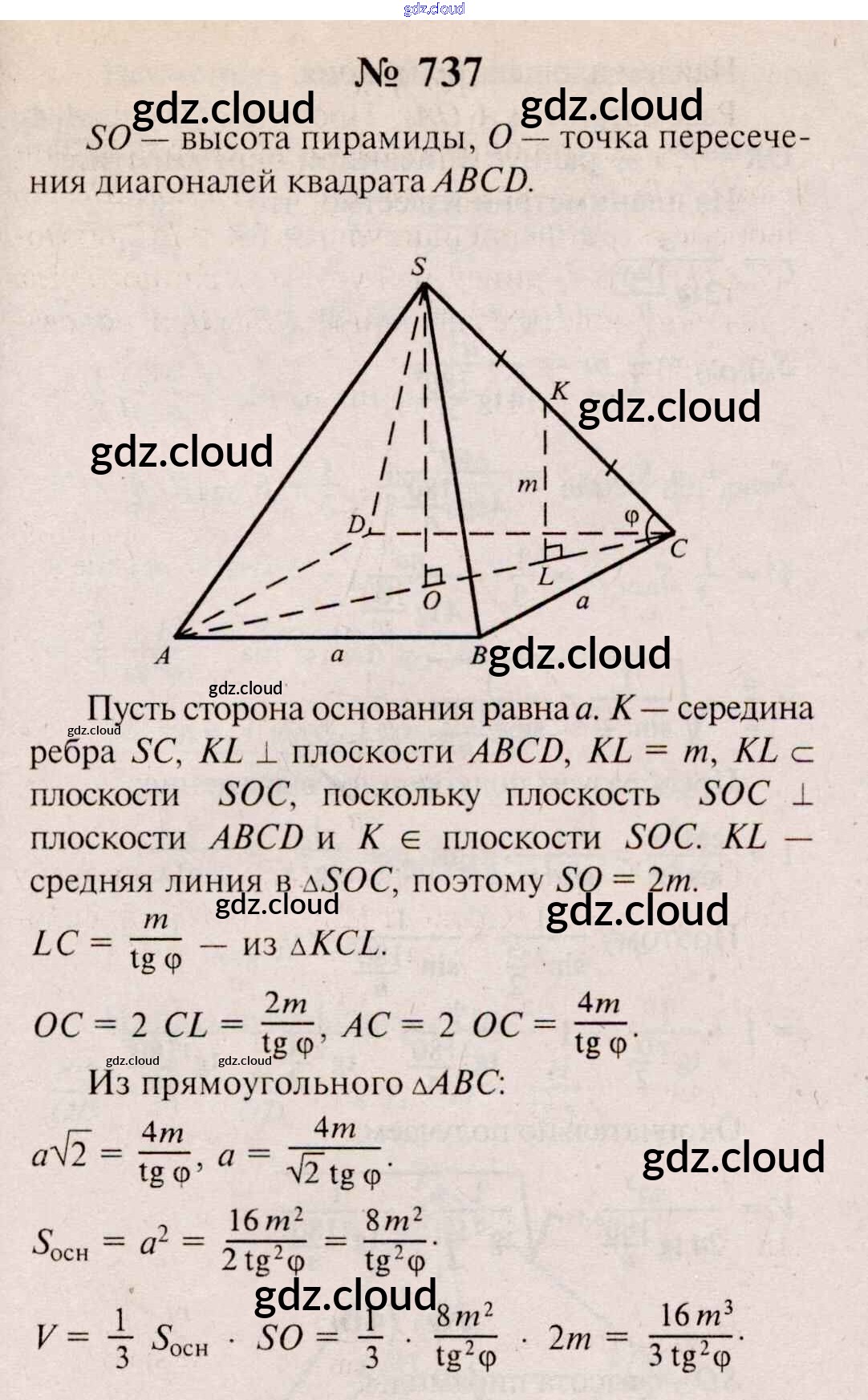 Ответ на задание 737 Учебник Геометрия  за 10, 11 (десятый, одиннадцатый) класс Атанасян, Бутузов, Кадомцев, Киселева, Позняк  Базовый и углубленный уровень 2015, 2023