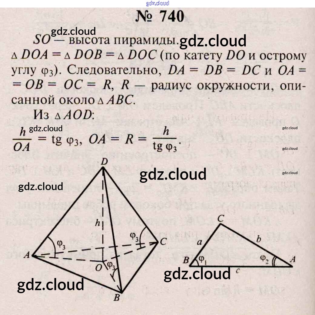 Ответ на задание 740 Учебник Геометрия  за 10, 11 (десятый, одиннадцатый) класс Атанасян, Бутузов, Кадомцев, Киселева, Позняк  Базовый и углубленный уровень 2015, 2023