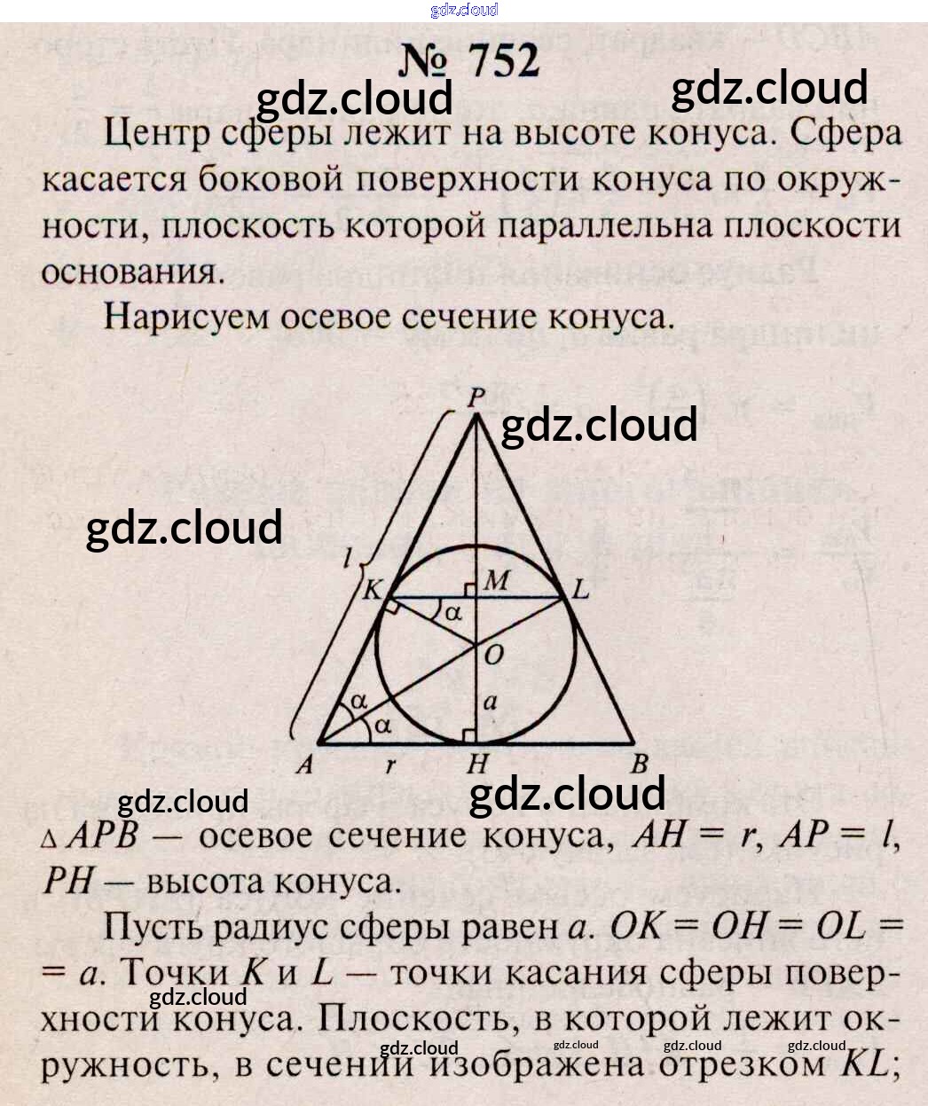 Ответ на задание 752 Учебник Геометрия  за 10, 11 (десятый, одиннадцатый) класс Атанасян, Бутузов, Кадомцев, Киселева, Позняк  Базовый и углубленный уровень 2015, 2023