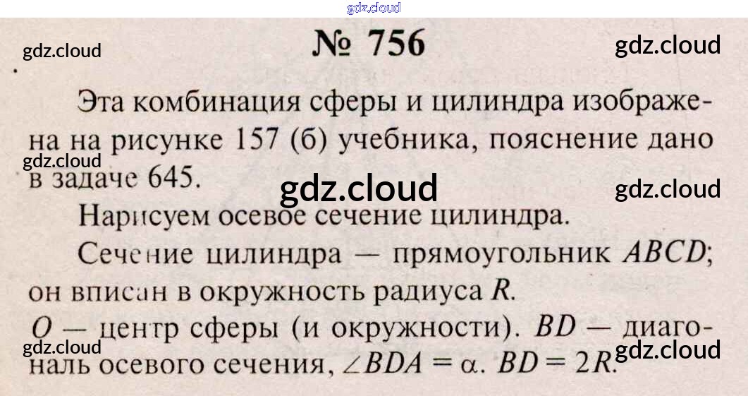 Ответ на задание 756 Учебник Геометрия  за 10, 11 (десятый, одиннадцатый) класс Атанасян, Бутузов, Кадомцев, Киселева, Позняк  Базовый и углубленный уровень 2015, 2023