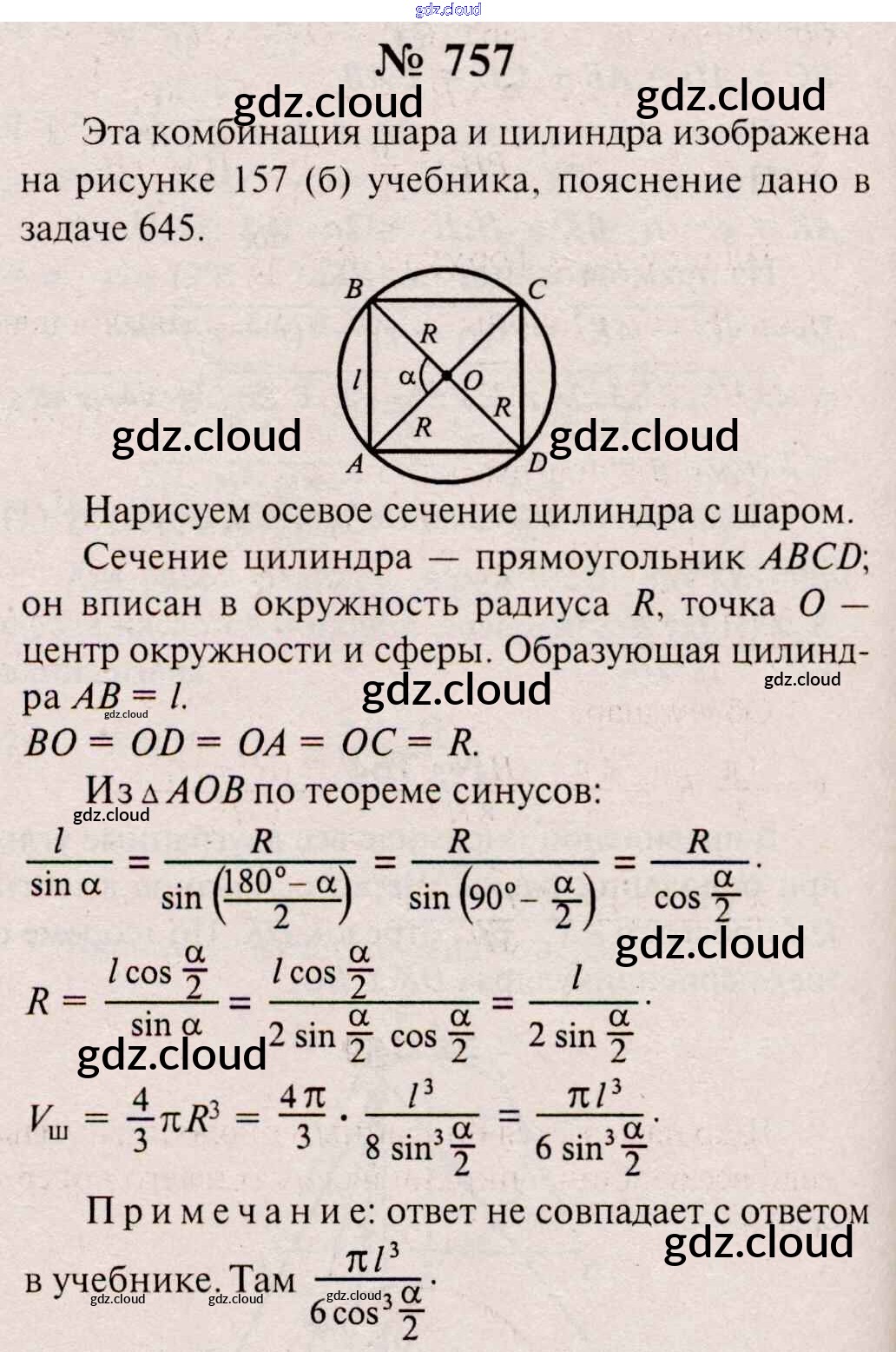 Ответ на задание 757 Учебник Геометрия  за 10, 11 (десятый, одиннадцатый) класс Атанасян, Бутузов, Кадомцев, Киселева, Позняк  Базовый и углубленный уровень 2015, 2023
