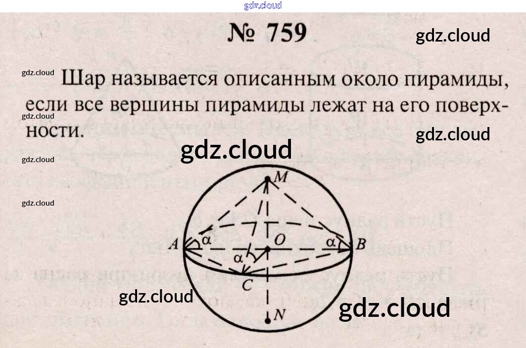 Ответ на задание 759 Учебник Геометрия  за 10, 11 (десятый, одиннадцатый) класс Атанасян, Бутузов, Кадомцев, Киселева, Позняк  Базовый и углубленный уровень 2015, 2023