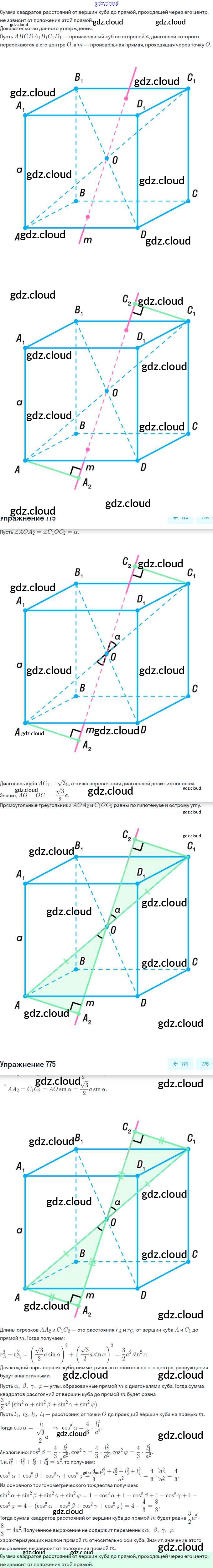 Ответ на задание 775 Учебник Геометрия  за 10, 11 (десятый, одиннадцатый) класс Атанасян, Бутузов, Кадомцев, Киселева, Позняк  Базовый и углубленный уровень 2015, 2023