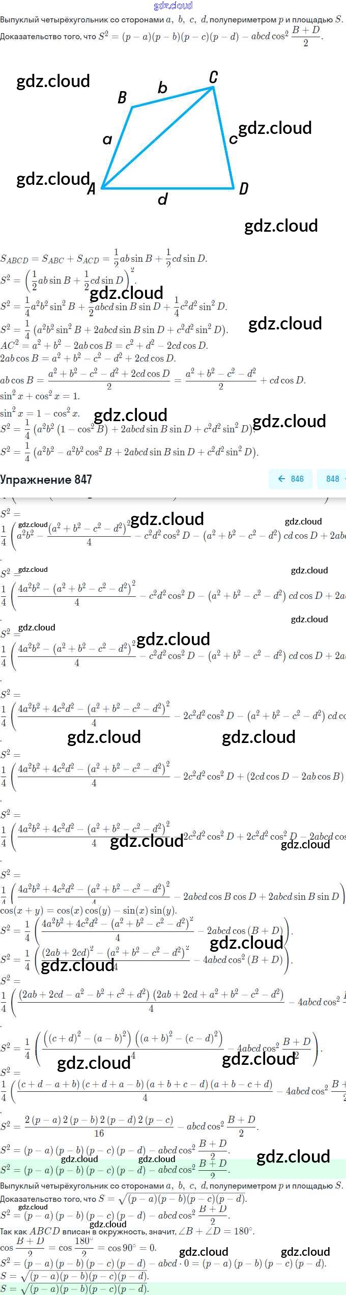 Ответ на задание 847 Учебник Геометрия  за 10, 11 (десятый, одиннадцатый) класс Атанасян, Бутузов, Кадомцев, Киселева, Позняк  Базовый и углубленный уровень 2015, 2023