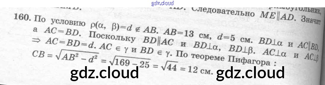 Ответ на задание 160 Учебник Геометрия  за 10, 11 (десятый, одиннадцатый) класс Атанасян, Бутузов, Кадомцев, Киселева, Позняк  Базовый и углубленный уровень 2015, 2023