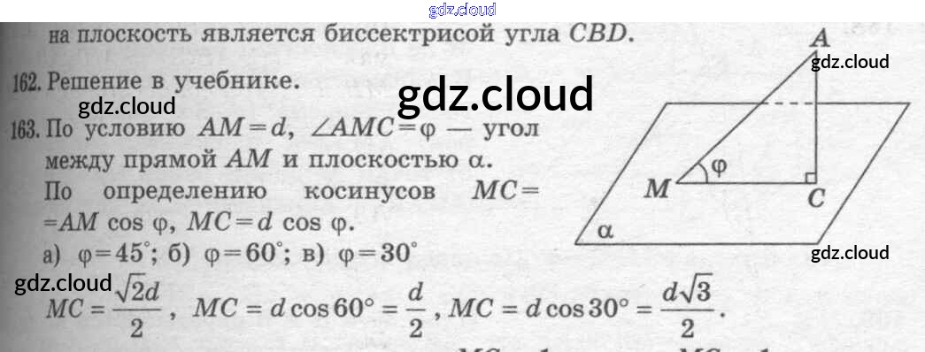 Ответ на задание 163 Учебник Геометрия  за 10, 11 (десятый, одиннадцатый) класс Атанасян, Бутузов, Кадомцев, Киселева, Позняк  Базовый и углубленный уровень 2015, 2023