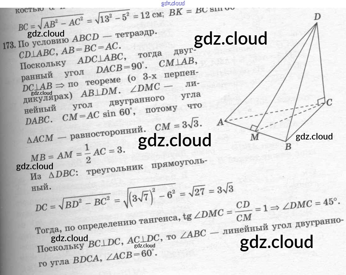 Ответ на задание 173 Учебник Геометрия  за 10, 11 (десятый, одиннадцатый) класс Атанасян, Бутузов, Кадомцев, Киселева, Позняк  Базовый и углубленный уровень 2015, 2023
