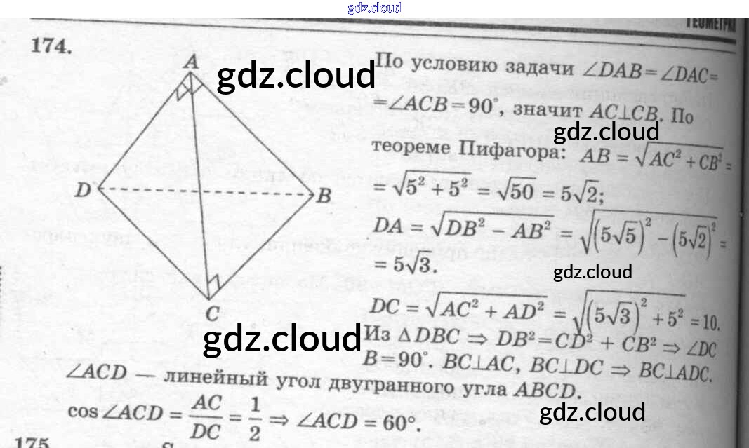 Ответ на задание 174 Учебник Геометрия  за 10, 11 (десятый, одиннадцатый) класс Атанасян, Бутузов, Кадомцев, Киселева, Позняк  Базовый и углубленный уровень 2015, 2023