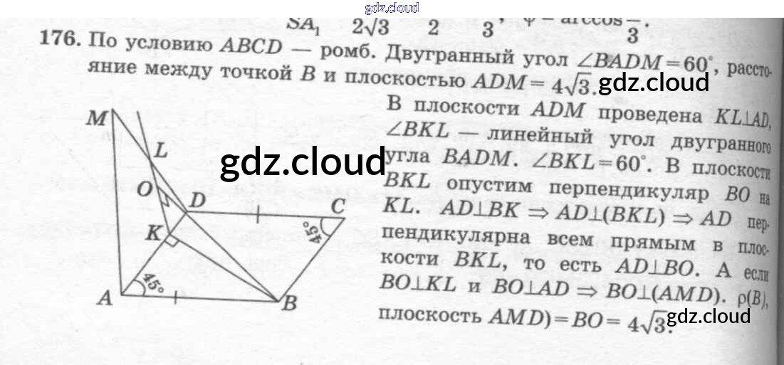 Ответ на задание 176 Учебник Геометрия  за 10, 11 (десятый, одиннадцатый) класс Атанасян, Бутузов, Кадомцев, Киселева, Позняк  Базовый и углубленный уровень 2015, 2023