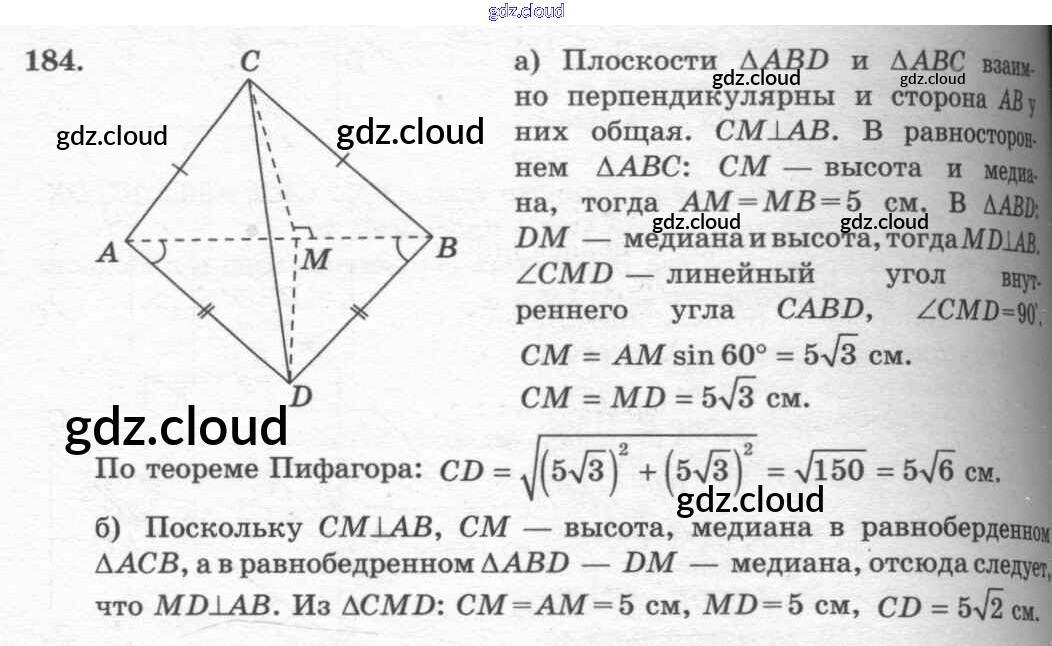 Ответ на задание 184 Учебник Геометрия  за 10, 11 (десятый, одиннадцатый) класс Атанасян, Бутузов, Кадомцев, Киселева, Позняк  Базовый и углубленный уровень 2015, 2023