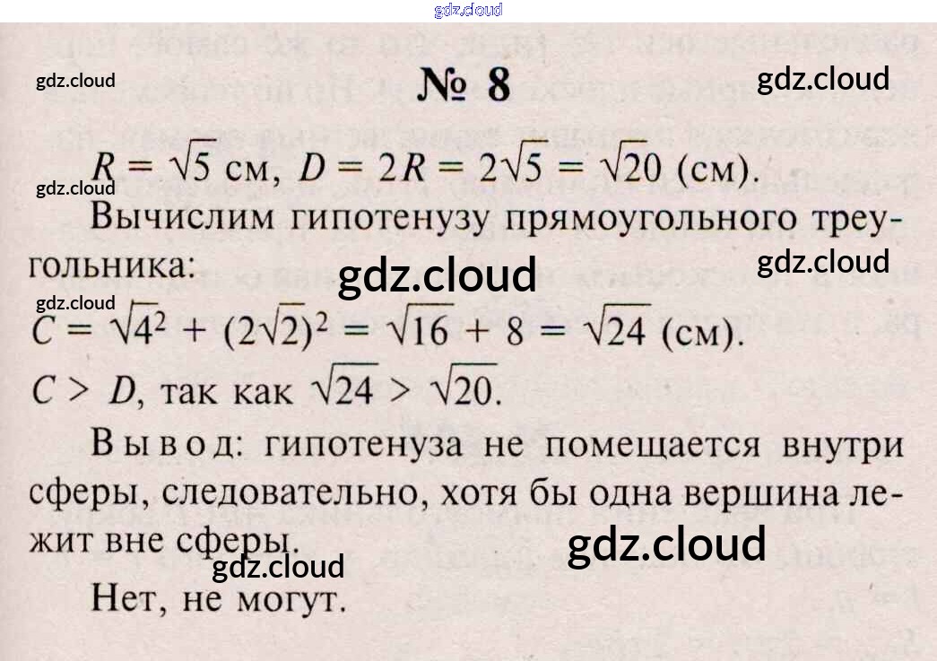 Ответ на задание 8 Учебник Геометрия  за 10, 11 (десятый, одиннадцатый) класс Атанасян, Бутузов, Кадомцев, Киселева, Позняк  Базовый и углубленный уровень 2015, 2023