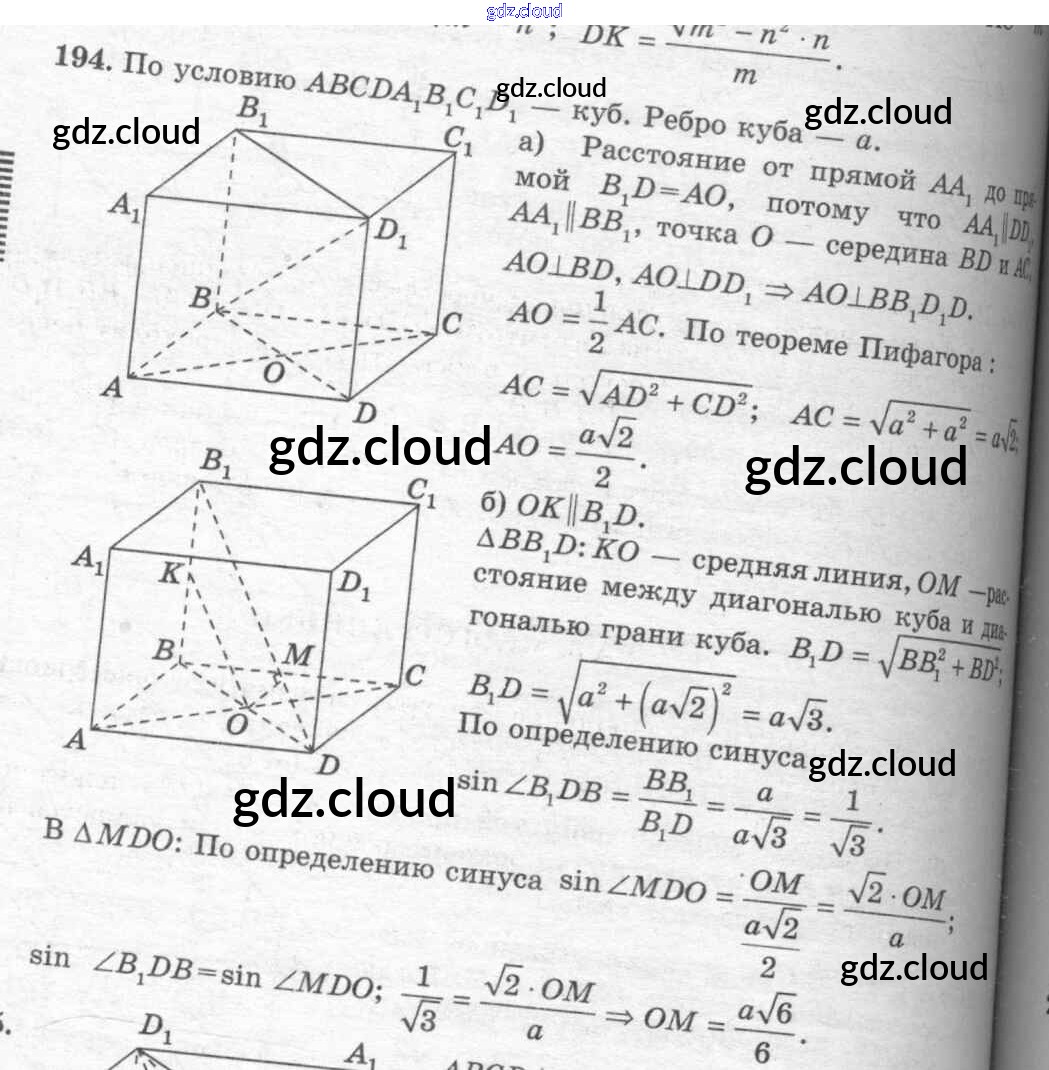 Ответ на задание 194 Учебник Геометрия  за 10, 11 (десятый, одиннадцатый) класс Атанасян, Бутузов, Кадомцев, Киселева, Позняк  Базовый и углубленный уровень 2015, 2023