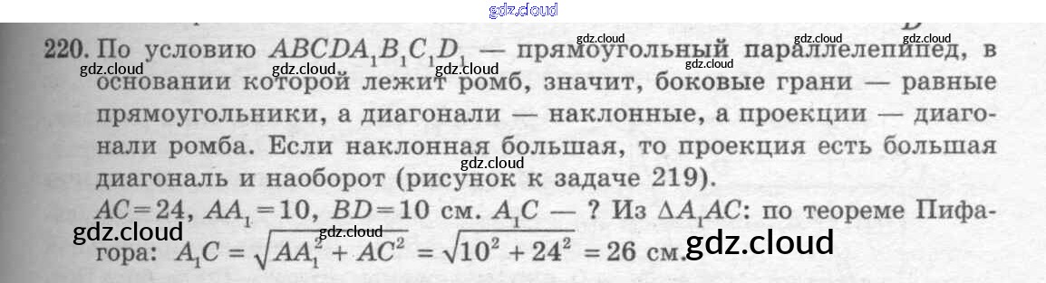 Ответ на задание 220 Учебник Геометрия  за 10, 11 (десятый, одиннадцатый) класс Атанасян, Бутузов, Кадомцев, Киселева, Позняк  Базовый и углубленный уровень 2015, 2023