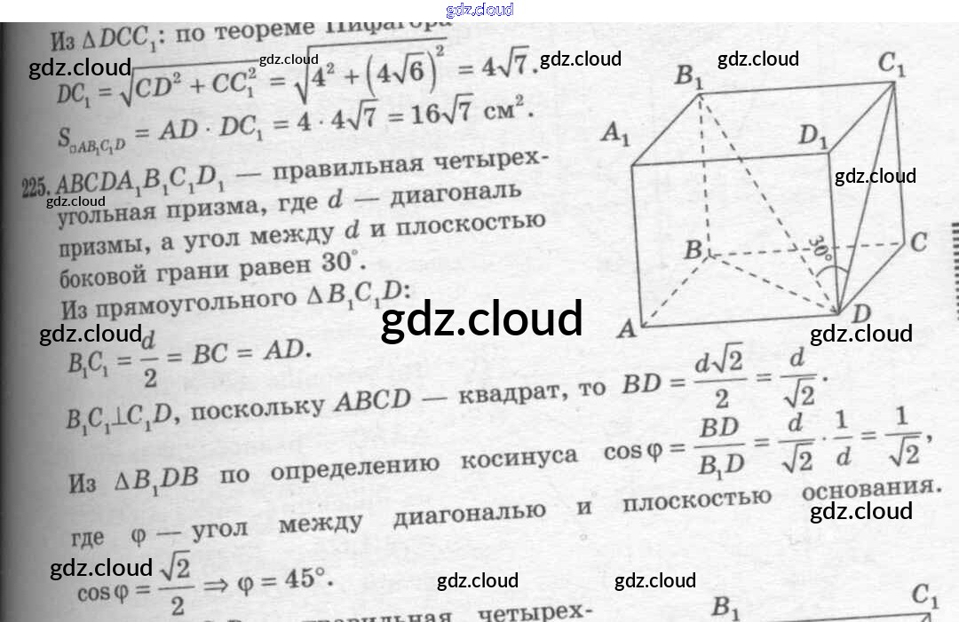 Ответ на задание 225 Учебник Геометрия  за 10, 11 (десятый, одиннадцатый) класс Атанасян, Бутузов, Кадомцев, Киселева, Позняк  Базовый и углубленный уровень 2015, 2023