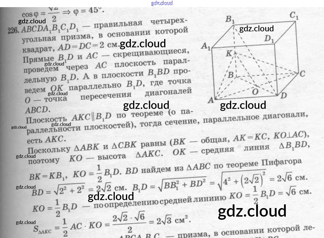 Ответ на задание 226 Учебник Геометрия  за 10, 11 (десятый, одиннадцатый) класс Атанасян, Бутузов, Кадомцев, Киселева, Позняк  Базовый и углубленный уровень 2015, 2023