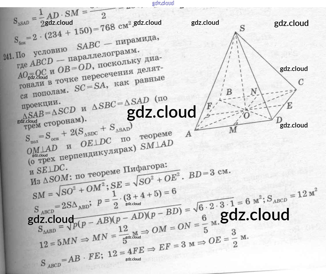 Ответ на задание 241 Учебник Геометрия  за 10, 11 (десятый, одиннадцатый) класс Атанасян, Бутузов, Кадомцев, Киселева, Позняк  Базовый и углубленный уровень 2015, 2023