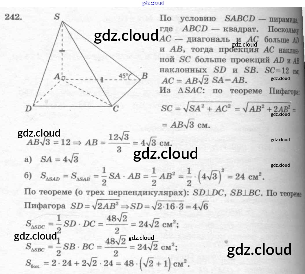 Ответ на задание 242 Учебник Геометрия  за 10, 11 (десятый, одиннадцатый) класс Атанасян, Бутузов, Кадомцев, Киселева, Позняк  Базовый и углубленный уровень 2015, 2023