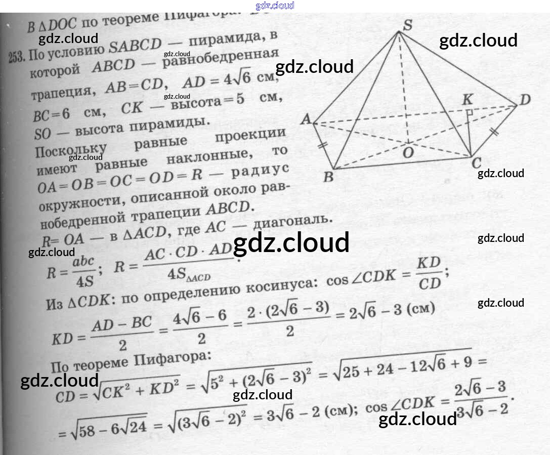 Ответ на задание 253 Учебник Геометрия  за 10, 11 (десятый, одиннадцатый) класс Атанасян, Бутузов, Кадомцев, Киселева, Позняк  Базовый и углубленный уровень 2015, 2023