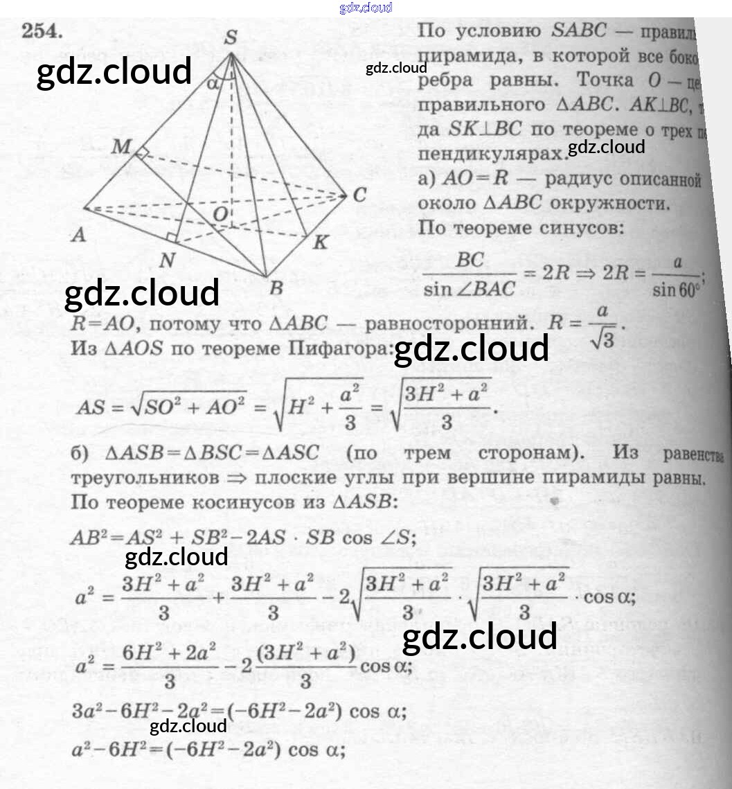 Ответ на задание 254 Учебник Геометрия  за 10, 11 (десятый, одиннадцатый) класс Атанасян, Бутузов, Кадомцев, Киселева, Позняк  Базовый и углубленный уровень 2015, 2023