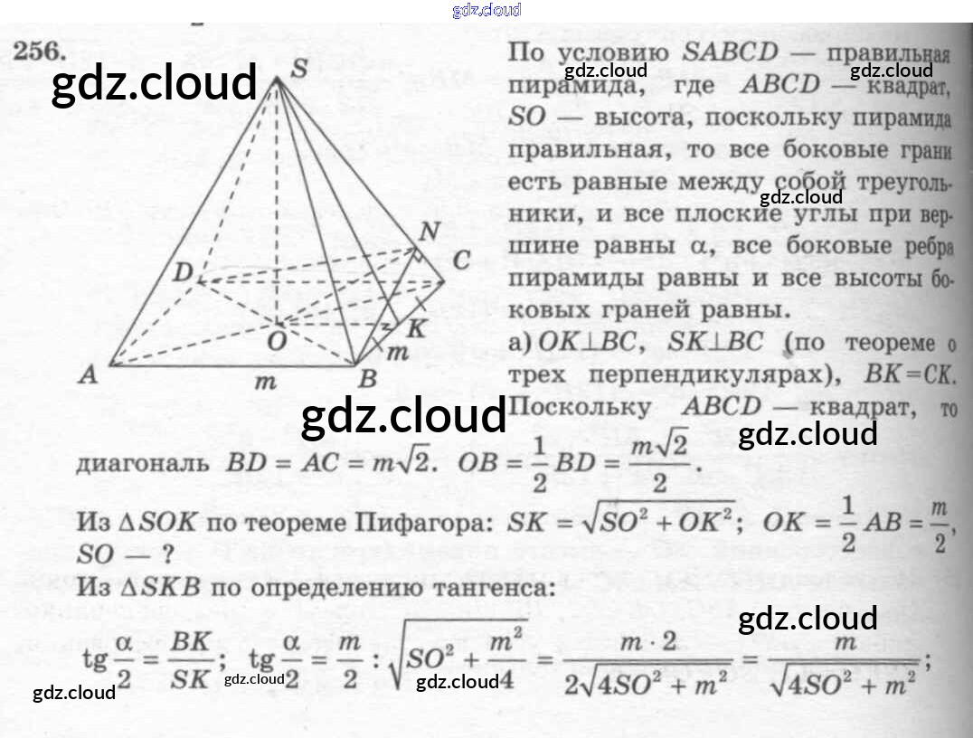 Ответ на задание 256 Учебник Геометрия  за 10, 11 (десятый, одиннадцатый) класс Атанасян, Бутузов, Кадомцев, Киселева, Позняк  Базовый и углубленный уровень 2015, 2023
