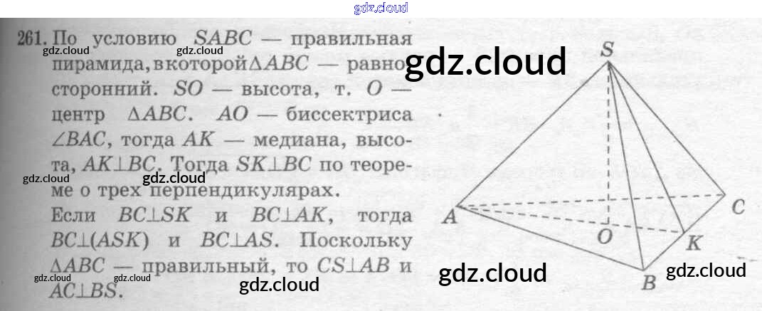 Ответ на задание 261 Учебник Геометрия  за 10, 11 (десятый, одиннадцатый) класс Атанасян, Бутузов, Кадомцев, Киселева, Позняк  Базовый и углубленный уровень 2015, 2023
