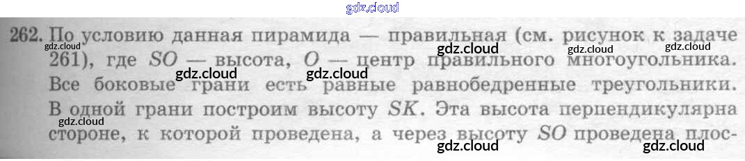 Ответ на задание 262 Учебник Геометрия  за 10, 11 (десятый, одиннадцатый) класс Атанасян, Бутузов, Кадомцев, Киселева, Позняк  Базовый и углубленный уровень 2015, 2023