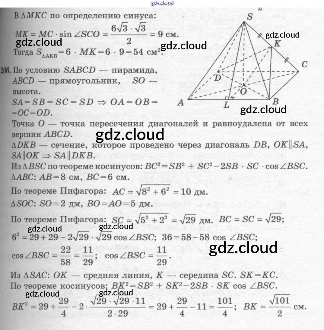 Ответ на задание 266 Учебник Геометрия  за 10, 11 (десятый, одиннадцатый) класс Атанасян, Бутузов, Кадомцев, Киселева, Позняк  Базовый и углубленный уровень 2015, 2023