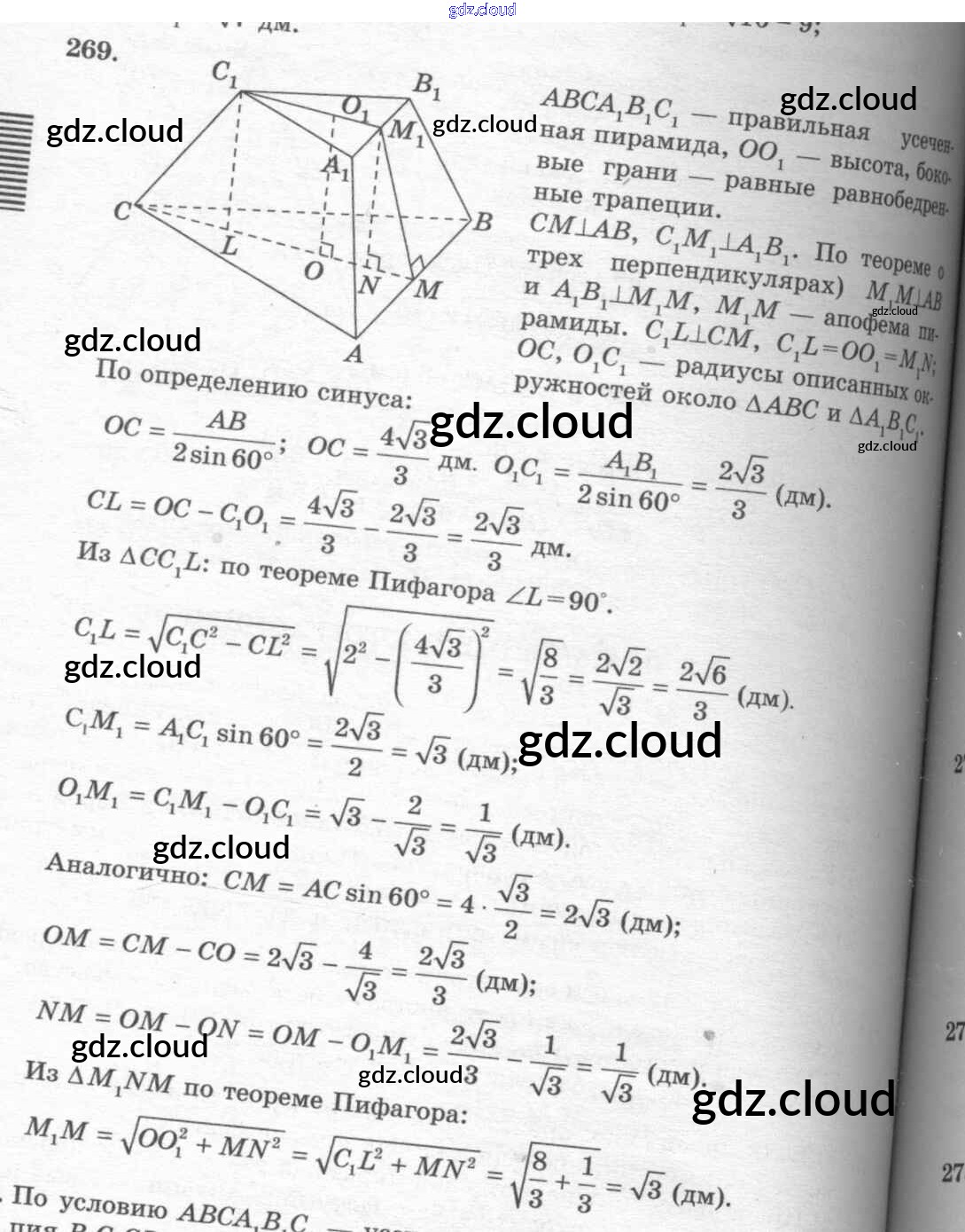 Ответ на задание 269 Учебник Геометрия  за 10, 11 (десятый, одиннадцатый) класс Атанасян, Бутузов, Кадомцев, Киселева, Позняк  Базовый и углубленный уровень 2015, 2023