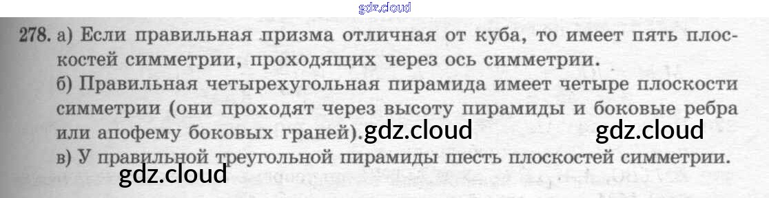 Ответ на задание 278 Учебник Геометрия  за 10, 11 (десятый, одиннадцатый) класс Атанасян, Бутузов, Кадомцев, Киселева, Позняк  Базовый и углубленный уровень 2015, 2023
