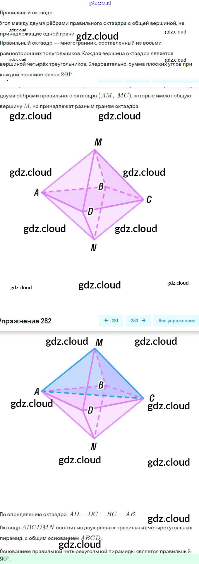 Ответ на задание 282 Учебник Геометрия  за 10, 11 (десятый, одиннадцатый) класс Атанасян, Бутузов, Кадомцев, Киселева, Позняк  Базовый и углубленный уровень 2015, 2023