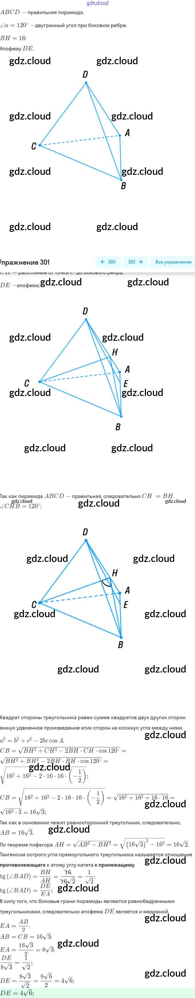Ответ на задание 301 Учебник Геометрия  за 10, 11 (десятый, одиннадцатый) класс Атанасян, Бутузов, Кадомцев, Киселева, Позняк  Базовый и углубленный уровень 2015, 2023
