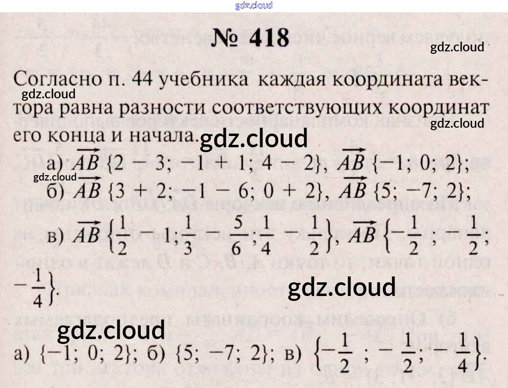 Ответ на задание 418 Учебник Геометрия  за 10, 11 (десятый, одиннадцатый) класс Атанасян, Бутузов, Кадомцев, Киселева, Позняк  Базовый и углубленный уровень 2015, 2023