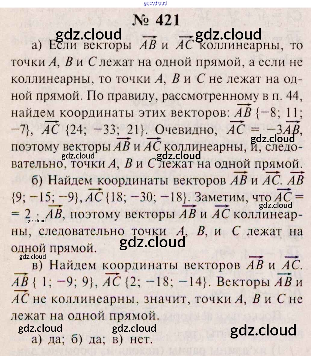 Ответ на задание 421 Учебник Геометрия  за 10, 11 (десятый, одиннадцатый) класс Атанасян, Бутузов, Кадомцев, Киселева, Позняк  Базовый и углубленный уровень 2015, 2023