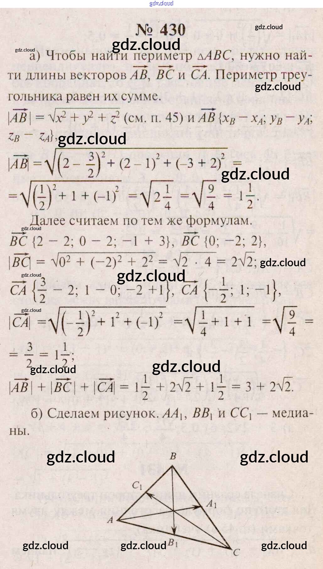 Ответ на задание 430 Учебник Геометрия  за 10, 11 (десятый, одиннадцатый) класс Атанасян, Бутузов, Кадомцев, Киселева, Позняк  Базовый и углубленный уровень 2015, 2023
