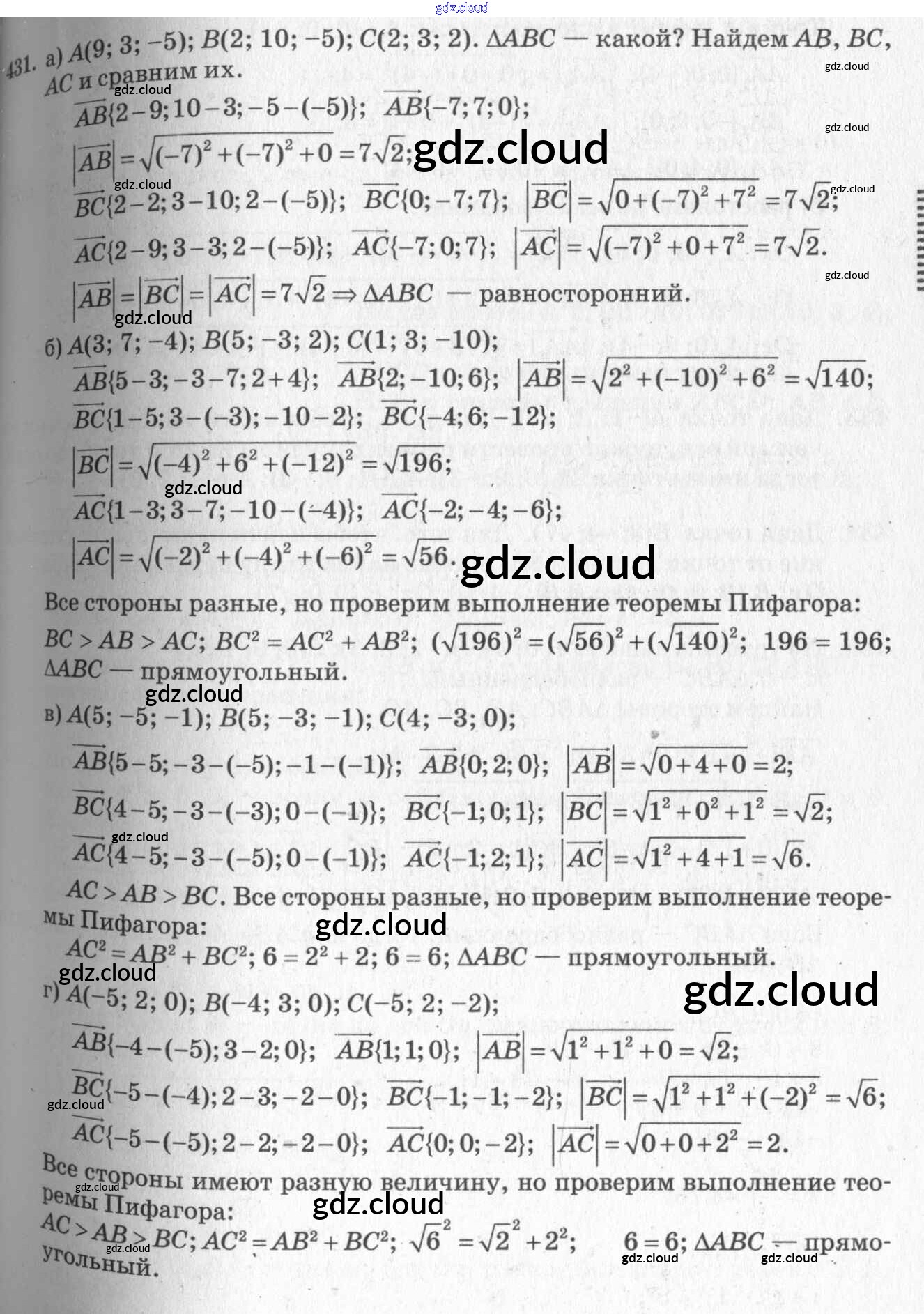 Ответ на задание 431 Учебник Геометрия  за 10, 11 (десятый, одиннадцатый) класс Атанасян, Бутузов, Кадомцев, Киселева, Позняк  Базовый и углубленный уровень 2015, 2023