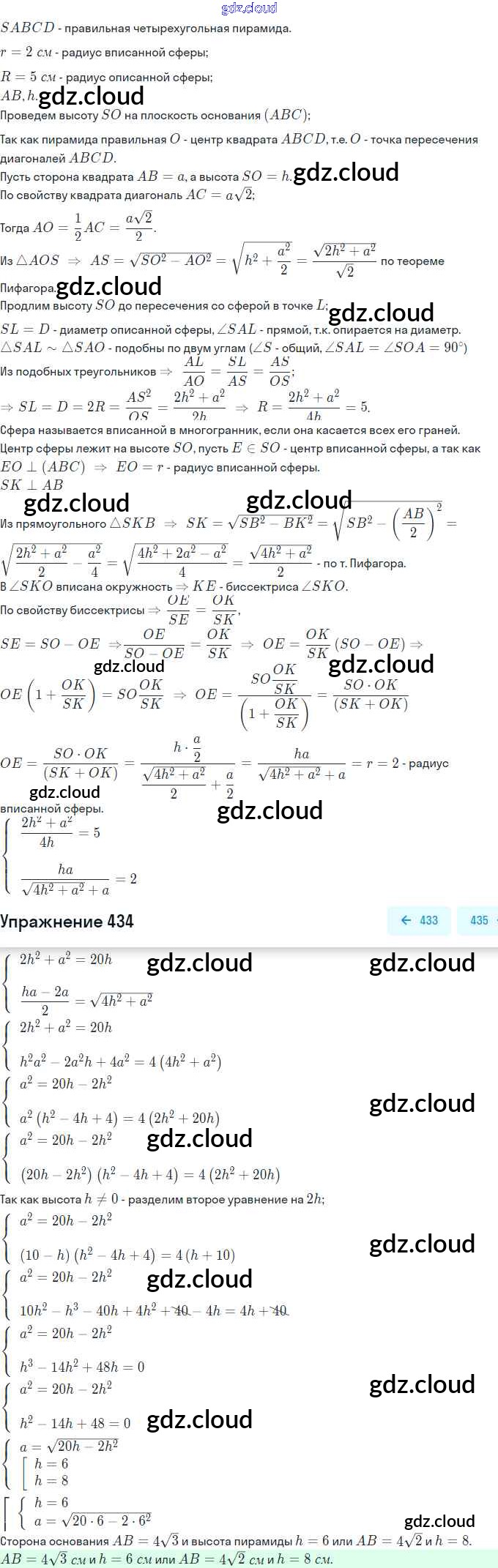 Ответ на задание 434 Учебник Геометрия  за 10, 11 (десятый, одиннадцатый) класс Атанасян, Бутузов, Кадомцев, Киселева, Позняк  Базовый и углубленный уровень 2015, 2023