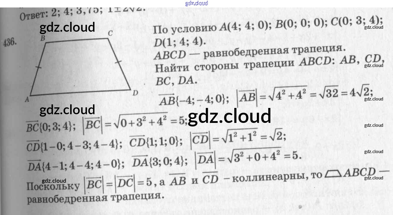Ответ на задание 436 Учебник Геометрия  за 10, 11 (десятый, одиннадцатый) класс Атанасян, Бутузов, Кадомцев, Киселева, Позняк  Базовый и углубленный уровень 2015, 2023
