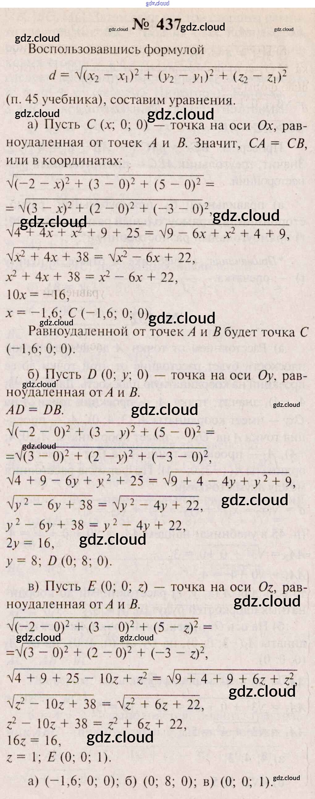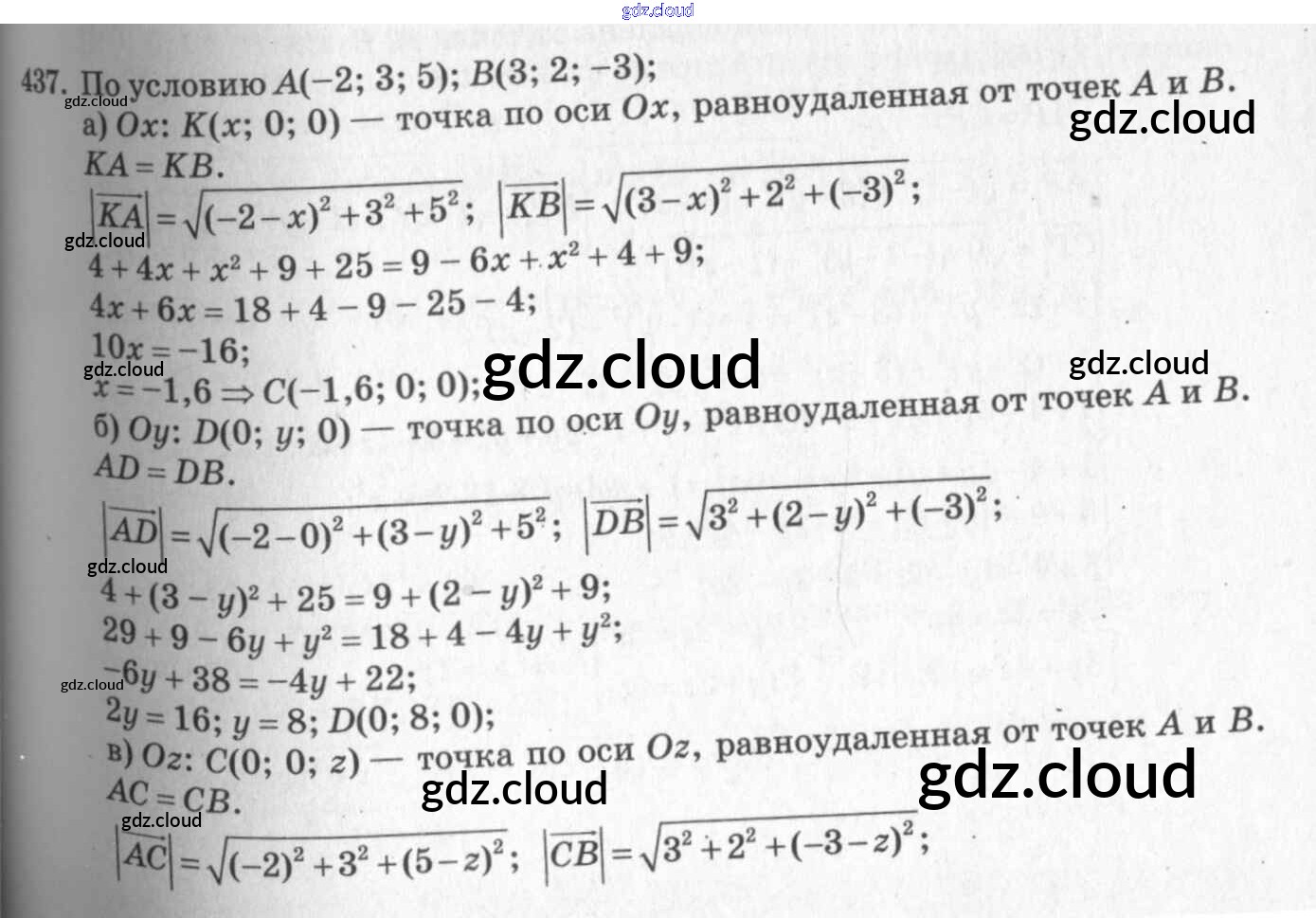 Ответ на задание 437 Учебник Геометрия  за 10, 11 (десятый, одиннадцатый) класс Атанасян, Бутузов, Кадомцев, Киселева, Позняк  Базовый и углубленный уровень 2015, 2023