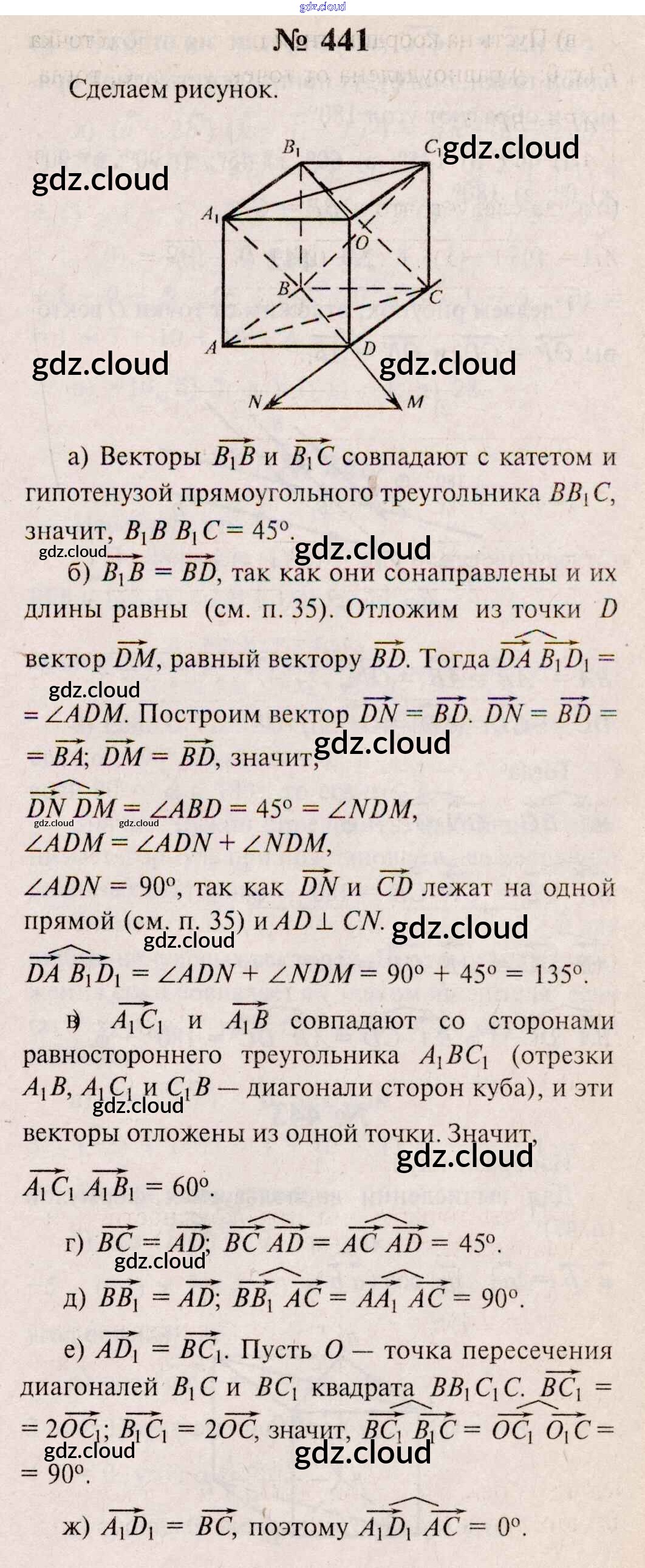 Ответ на задание 441 Учебник Геометрия  за 10, 11 (десятый, одиннадцатый) класс Атанасян, Бутузов, Кадомцев, Киселева, Позняк  Базовый и углубленный уровень 2015, 2023