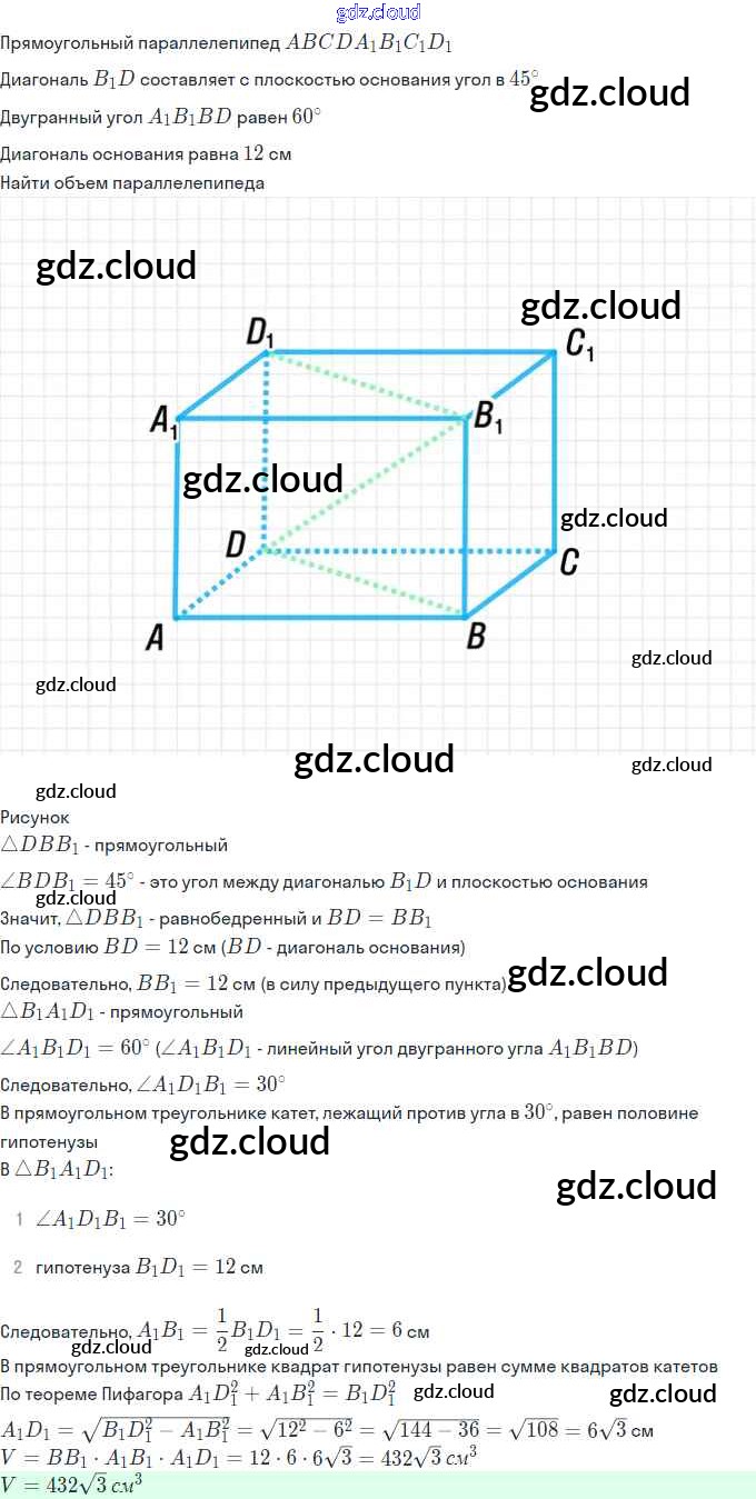Ответ на задание 449 Учебник Геометрия  за 10, 11 (десятый, одиннадцатый) класс Атанасян, Бутузов, Кадомцев, Киселева, Позняк  Базовый и углубленный уровень 2015, 2023