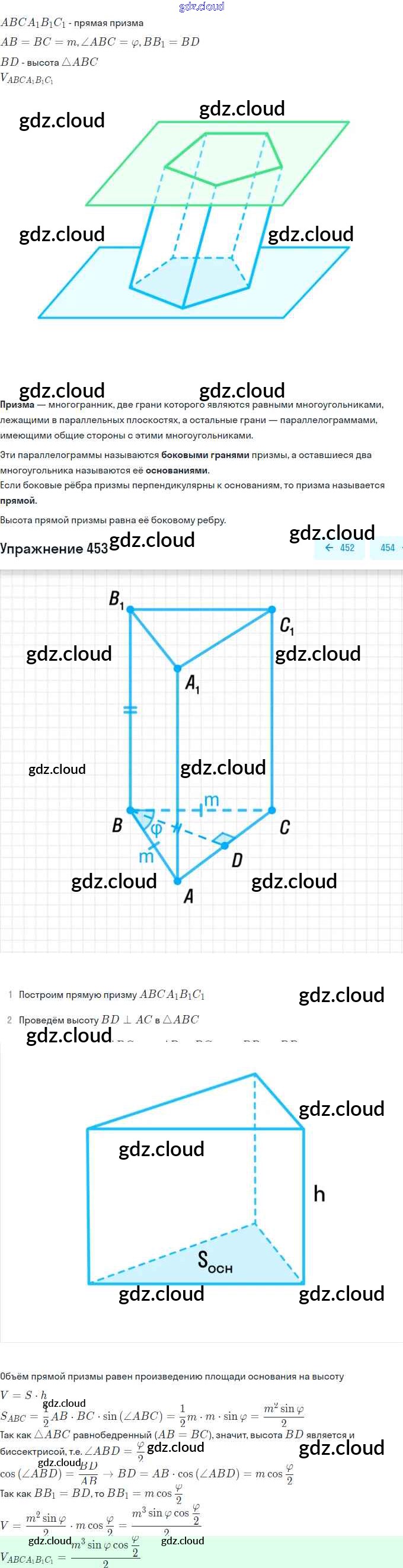 Ответ на задание 453 Учебник Геометрия  за 10, 11 (десятый, одиннадцатый) класс Атанасян, Бутузов, Кадомцев, Киселева, Позняк  Базовый и углубленный уровень 2015, 2023