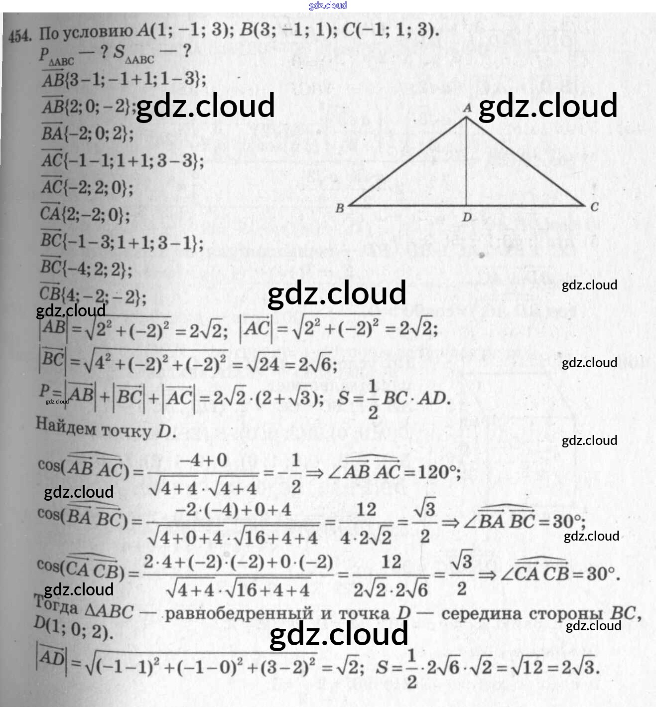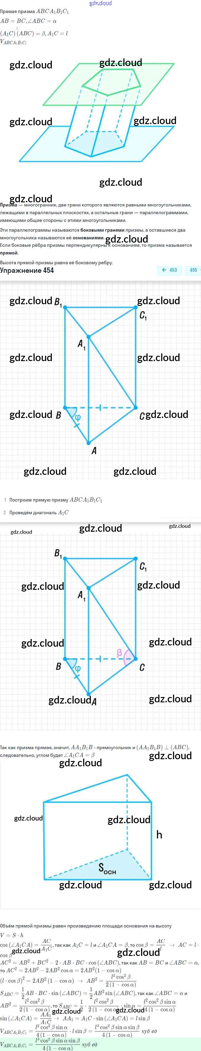 Ответ на задание 454 Учебник Геометрия  за 10, 11 (десятый, одиннадцатый) класс Атанасян, Бутузов, Кадомцев, Киселева, Позняк  Базовый и углубленный уровень 2015, 2023