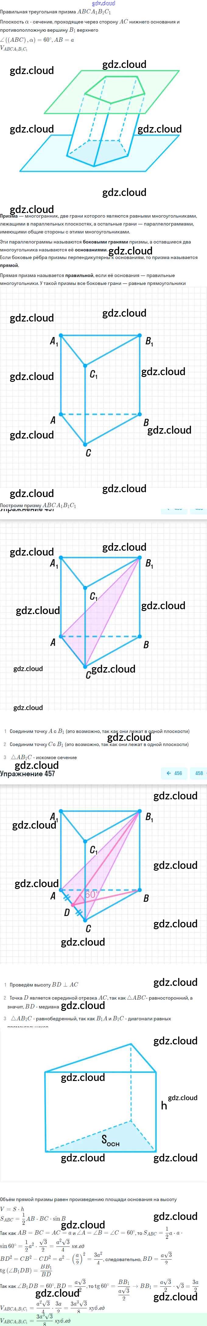 Ответ на задание 457 Учебник Геометрия  за 10, 11 (десятый, одиннадцатый) класс Атанасян, Бутузов, Кадомцев, Киселева, Позняк  Базовый и углубленный уровень 2015, 2023