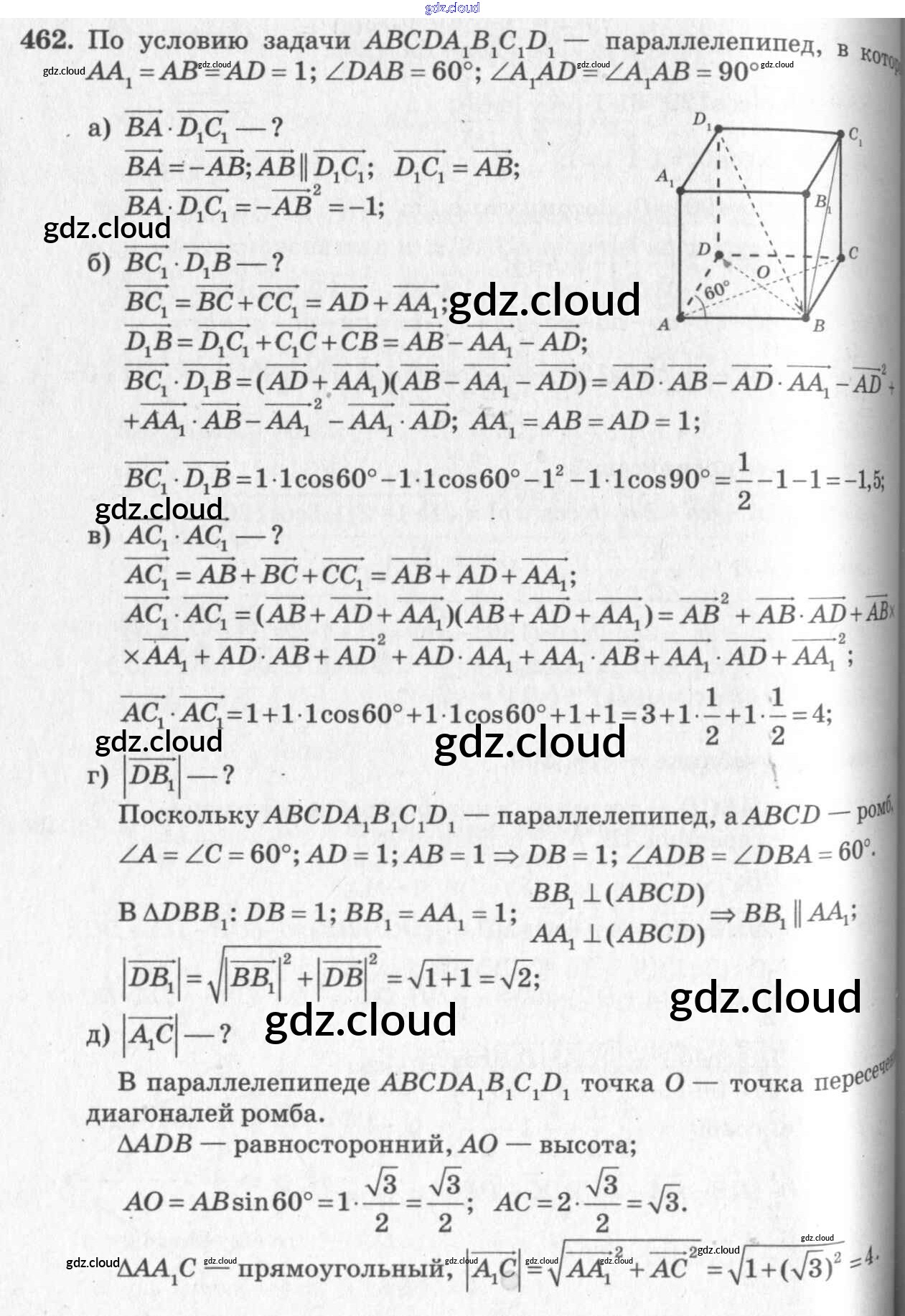 Ответ на задание 462 Учебник Геометрия  за 10, 11 (десятый, одиннадцатый) класс Атанасян, Бутузов, Кадомцев, Киселева, Позняк  Базовый и углубленный уровень 2015, 2023