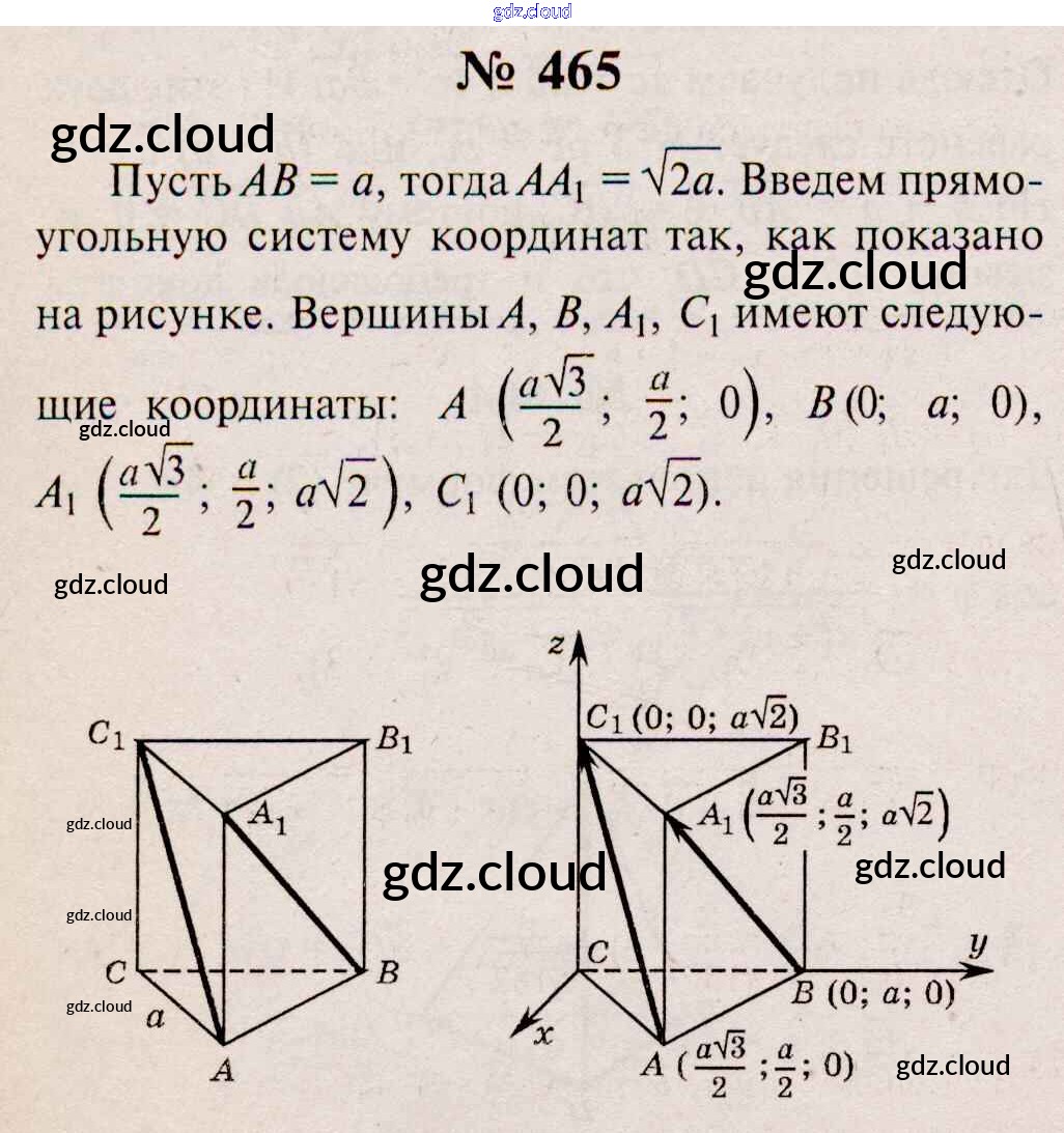 Ответ на задание 465 Учебник Геометрия  за 10, 11 (десятый, одиннадцатый) класс Атанасян, Бутузов, Кадомцев, Киселева, Позняк  Базовый и углубленный уровень 2015, 2023