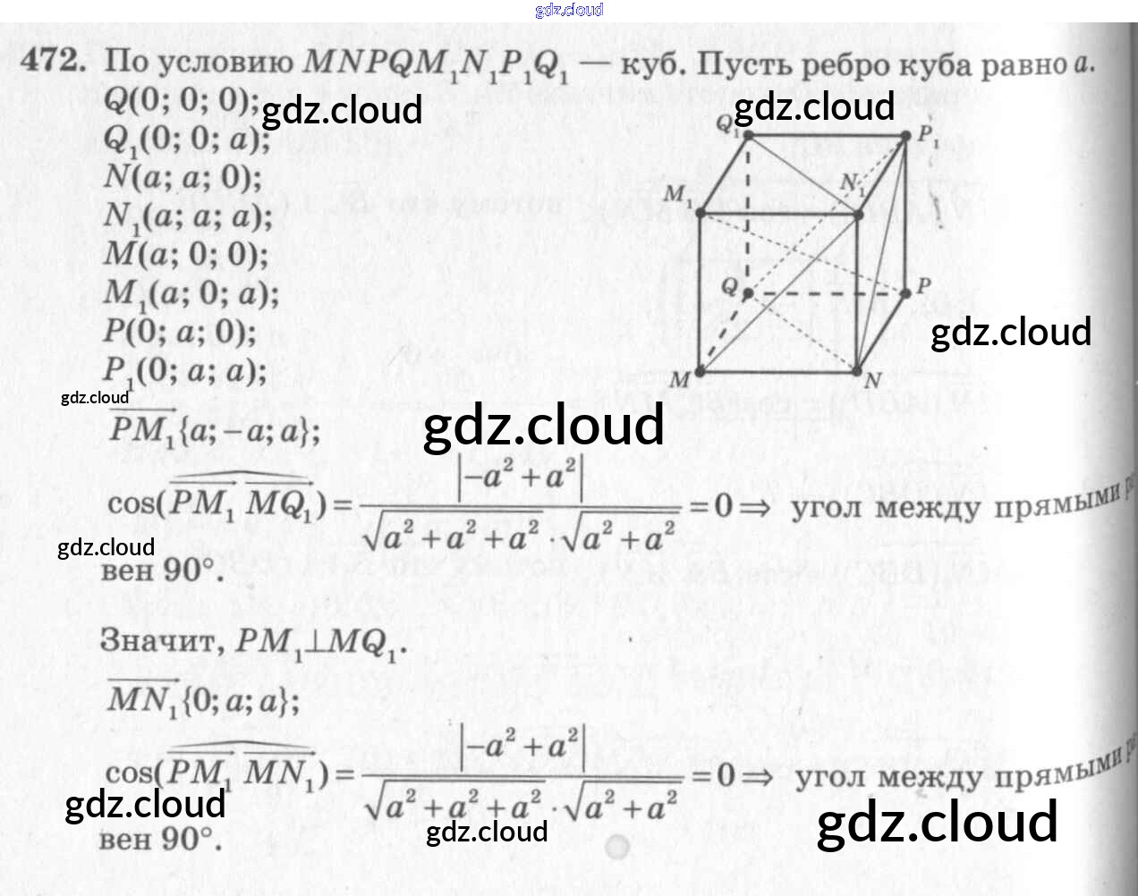Ответ на задание 472 Учебник Геометрия  за 10, 11 (десятый, одиннадцатый) класс Атанасян, Бутузов, Кадомцев, Киселева, Позняк  Базовый и углубленный уровень 2015, 2023