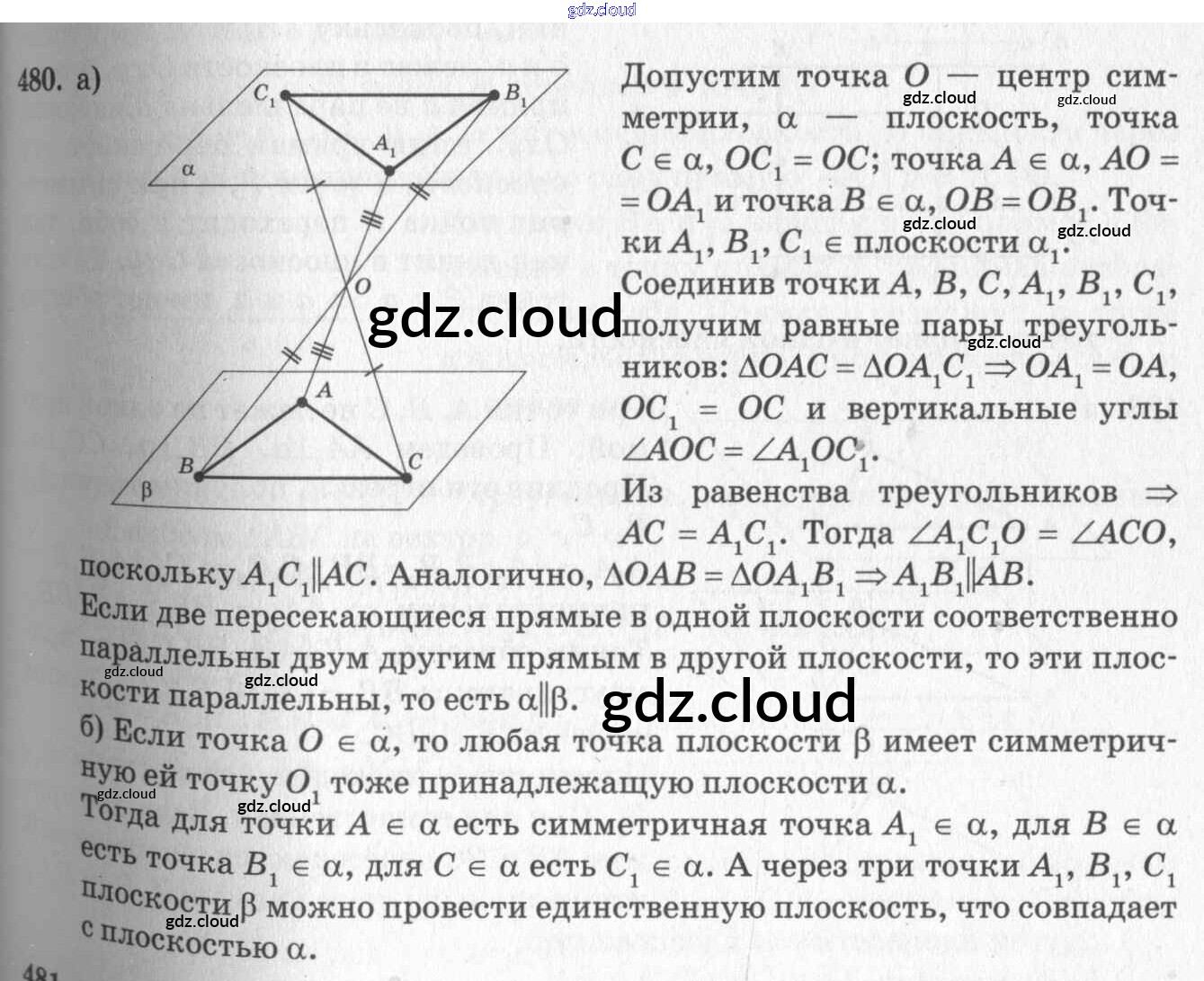 Ответ на задание 480 Учебник Геометрия  за 10, 11 (десятый, одиннадцатый) класс Атанасян, Бутузов, Кадомцев, Киселева, Позняк  Базовый и углубленный уровень 2015, 2023