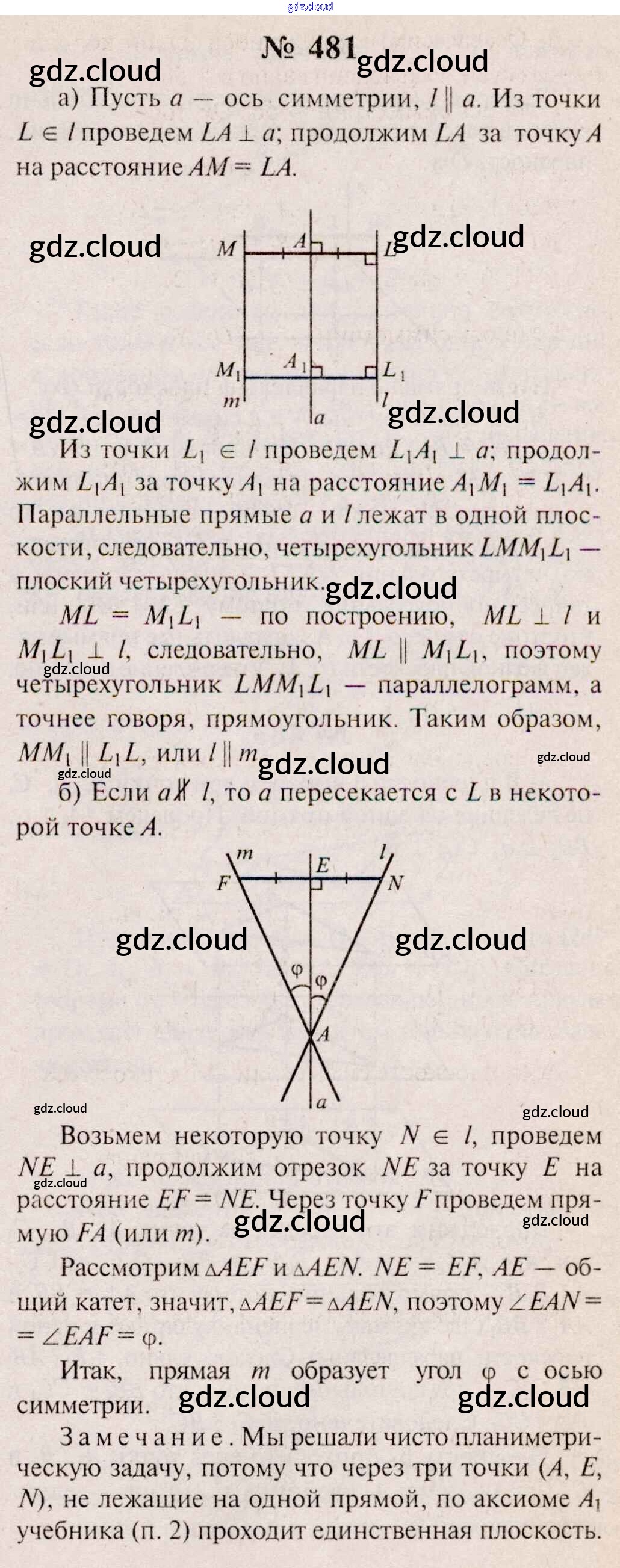 Ответ на задание 481 Учебник Геометрия  за 10, 11 (десятый, одиннадцатый) класс Атанасян, Бутузов, Кадомцев, Киселева, Позняк  Базовый и углубленный уровень 2015, 2023