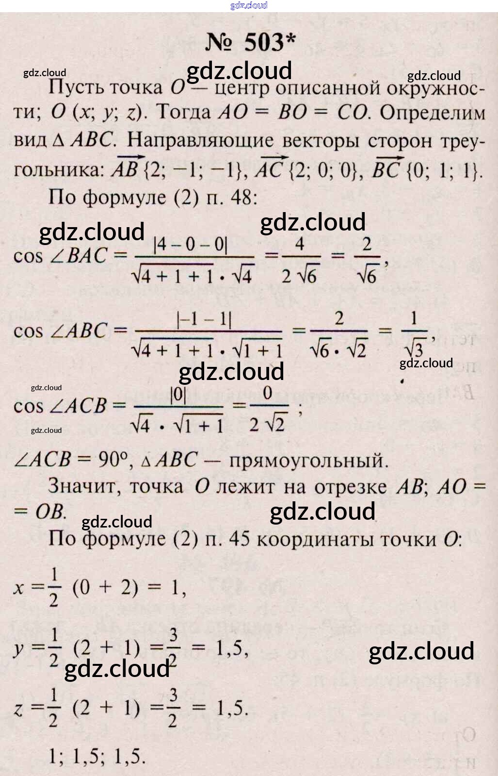 Ответ на задание 503 Учебник Геометрия  за 10, 11 (десятый, одиннадцатый) класс Атанасян, Бутузов, Кадомцев, Киселева, Позняк  Базовый и углубленный уровень 2015, 2023